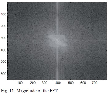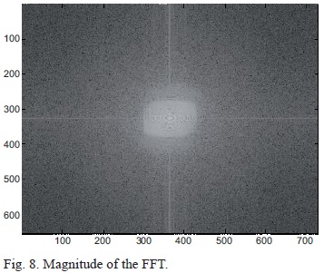 To determine the extent to which the thermal turbulence affected the propagating laser beam, it was necessary to compare readings 2-5 with reading 1. A fast Fourier transform (FFT) was used, since it resolves an image into its magnitude and phase domains. The magnitude is useful for image processing since all the frequencies that compose the image are specified. Due to the fact that phase images do not provide sufficient new information to describe the image any further, we will focus on the frequency domain. In Figure 8, the image is formed on a two-dimensional plane in polar representation and contains various components whose magnitudes decrease with larger frequencies. The central bright spot is known as the zero frequency zone or direct current zone and represents the average color value of the entire image. Additionally, the image does not contain imaginary components, thus the magnitude at the center has a zero phase resulting in a grey spot. The large concentration around the central point indicates a lower spatial frequency. Numerous adjustments can be made to the transformed image to either improve the focus or decrease blurriness, which can be achieved by applying a low pass filter to preserve the low frequency regions, or a high pass filter to preserve the sharpness and defined edges. Intermittent filters known as band pass filters can be applied. In subsequent readings we will compare the FFT's to Figure 8 by image subtraction. If the subtraction yields a completely grey image it is implied that the two images coincide completely, hence there is no change in beam position or phase. Figure 9 shows that the intensity profile of an unperturbed beam resembles that of the laser Gaussian laser beam (i.e., no change in intensity).