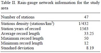 At-site 24-h design rainfall depths for different year return periods were then obtained by scaling the regional growth curve by the sites' average annual maximum rainfall. Table VI presents quantile estimations for each rain-gauge station.