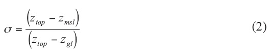 where all heights are expressed with respect to the sea level, and ztop is the top of the model's coordinate system. The model internal height above the ground level (AGL) can be chosen at any interval.