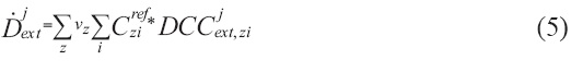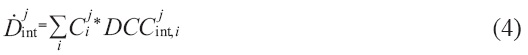 where Cij is the average concentration radionuclide i in the reference organism j (Bq kg-1fresh weight), and DCCjint,i is the radionuclide specific dose conversion coefficient for internal exposure (μG h-1 per Bq kg-1 fresh weight).
