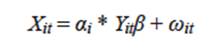 where i = 1,...,N ; t = 1,...,T; α i = individual constant term; β = slope parameter and ω i =stationary distribution; X it and Y it are integrated processes of order I(1) for all i . Kao (1999) derives two (DF and ADF) types of panel cointegration tests. Both tests can be calculated from: