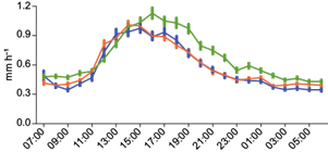 To investigate annual and daily meteorological cycles through the study period in our gradient, an hourly dataset was calculated based on the 5-min frequency measurements (n =12 per hour) and considering the 60 min after the hour. The values used here were hourly means, maximums, and minimums for all the variables but precipitation, for which hourly totals were calculated.