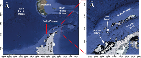 Fig. 1 Study area: Oceanic region of the western Antarctic Peninsula, located between 60º-66º S and 57º-67º W.
