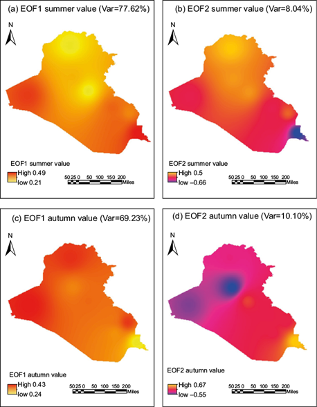 4.2. Spatial modes of Iraqi summer and autumn temperature variations