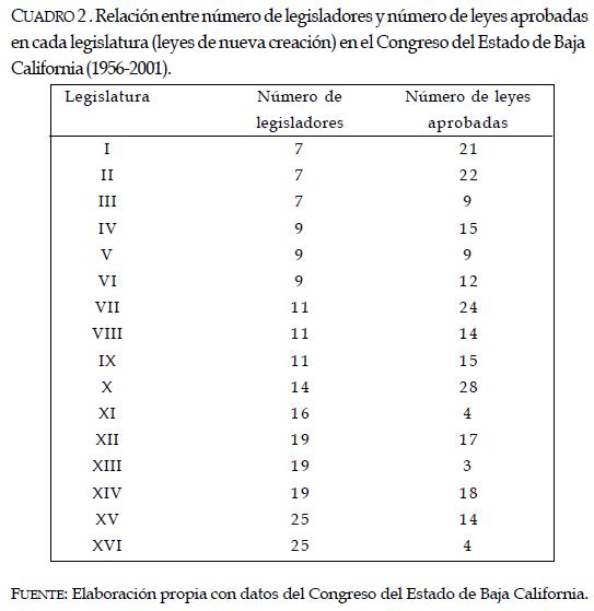 Es fácil observar cómo el poder ejecutivo (gobernador) desempeñó ampliamente las funciones legislativas en el marco de un sistema de gobierno unificado (de 1953 a 1989). Y aunque de 1989 al año 2001 identificamos una mayor capacidad productiva por parte del poder legislativo, el ejecutivo local, de origen panista (con tres titulares distintos), mantiene una alta tasa de producción legislativa.