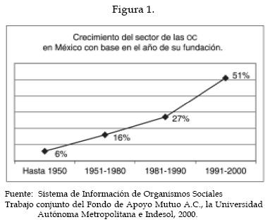 Otras razones asociadas a la aparición de las OC en escena son: la crisis económica desatada al inicio de la década de 1980; el terremoto de 1985 en la ciudad de México y las elecciones de 1988. Debido a estos y otros factores "así como a la creciente vitalidad de la sociedad civil y, hasta cierto punto, el interés de las agencias internacionales de desarrollo en financiar a las OC's, un nuevo grupo de éstas que venía desarrollándose desde los años sesenta aceleró su ritmo de crecimiento en los ochentas..." (Méndez, 1998:26).