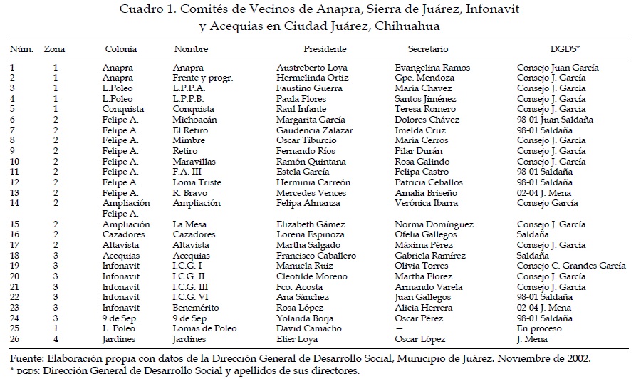Los comités de vecinos se convirtieron, así, en una estructura territorial atractiva para la administración municipal, de tal suerte que la administración de Gustavo Elizondo (1998-2001) favoreció la formación creciente de comités de vecinos a través de Juan Saldaña, director general de Desarrollo Social.