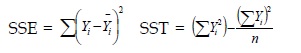 Para el cálculo del valor del coeficiente de determinación R2 se utiliza:
