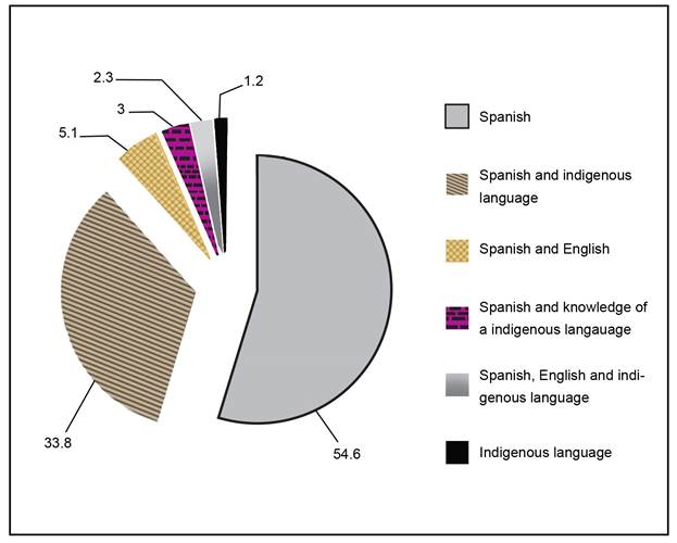 Figure 3 Linguistic diversity in children in indigenous elementary schools in Baja California (percentages)