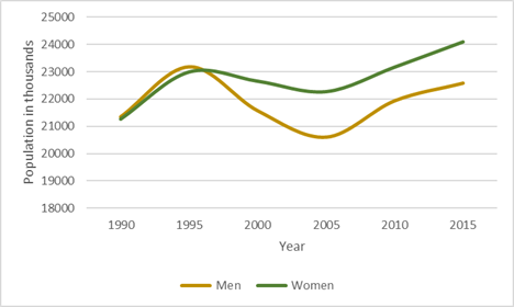 Figure 2 Tres Valles demographic behavior, by gender, 1990-2015