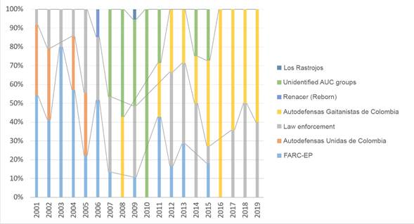 Figure 3 Armed actors responsible for violence in the Gulf of Urabá