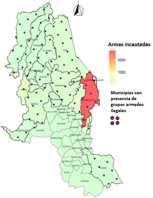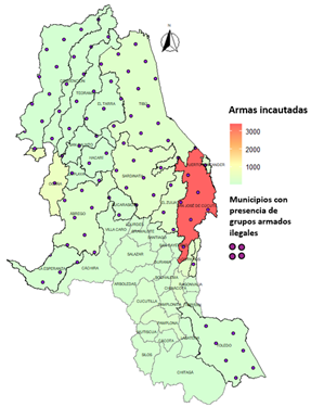 Figura 3 Incautaciones no administrativas de armas de fuego en Norte de Santander por municipios (2015-2022)