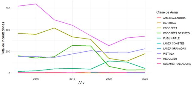 Figura 7 Línea de tiempo de las armas incautadas en Norte de Santander (2015-2022)
