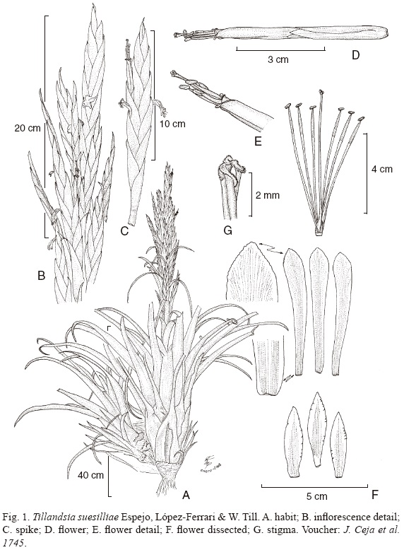 Tillandsia suesilliae Espejo, López-Ferrari et W. Till, sp. nov. Figs. 1 and 2.