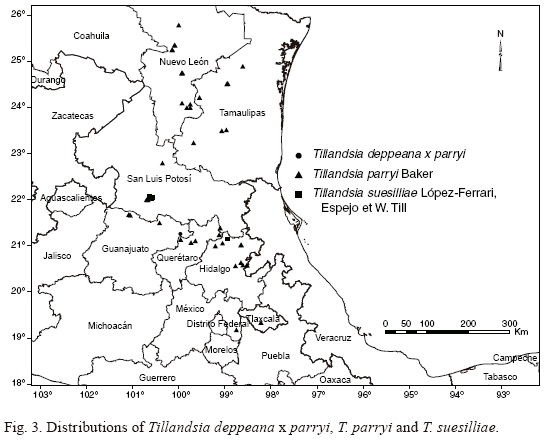 Key words: Bromeliaceae, Hidalgo, Mexico, San Luis Potosí, Tillandsia parryi, Tillandsia sueae.