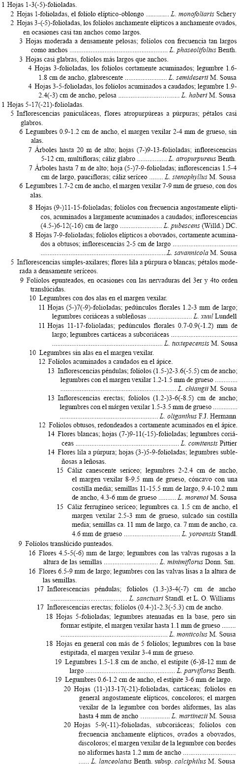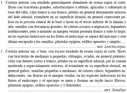 Palabras clave: leguminosae, Lonchocarpus, Mesoamérica, sect. Standleyi, Sudamérica.