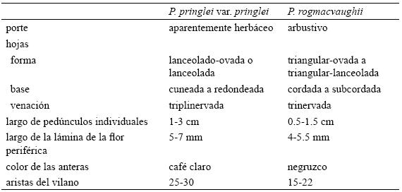 Siguiendo las claves de Blake (1926), de Fay (1978) y de McVaugh (1984), P. rogmacvaughii se identificaría como P. pringlei B.L. Rob. & Greenm. var. pringlei, conocido sólo de dos colectas realizadas en Jalisco y en Sinaloa. Es posible que los dos taxa estén realmente emparentados, pues coinciden en la presencia de brácteas involúcrales interiores obtusas, amarillas, ciliadas y con frecuencia reflejas, en la pubescencia, en el tamaño así como en la forma de las cabezuelas y en el tamaño de los aquenios.