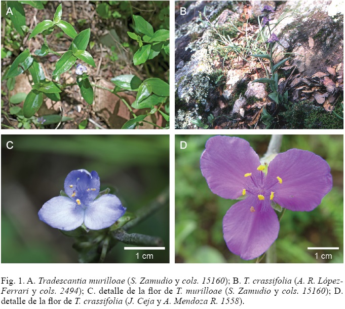 Tradescantia murilloae Zamudio, Espejo, López-Ferrari & Ceja, sp. nov. Fig. 1 A y C; Fig. 2 A, C y D.