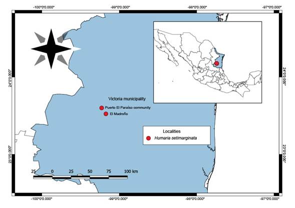 Specimens were collected in 2019 in the Victoria municipality, Tamaulipas, located in the Sierra Madre Oriental (Fig. 1). The specimens were deposited in the José Castillo Tovar Mycological Herbarium of the Instituto Tecnológico de Ciudad Victoria (ITCV) and the Escuela Nacional de Ciencias Biológicas Herbarium (ENCB) of the Instituto Politécnico Nacional.