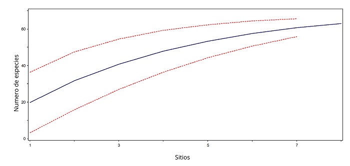 El valor obtenido para la riqueza de especies, superior a 5.0 (S=10.4), fue alto. Aunque los esfuerzos de muestreo no revelaron todos los representantes de los macrohongos encontrados en los lugares estudiados (Fig. 2), el muestreo fue representativo ya que los sitios de recolección aún no han sido explorados con el censo de la micobiota.