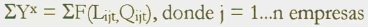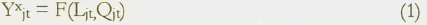Donde Yxjt representa el nivel agregado de la producción de la industria en la región j, que exporta la totalidad de su producción. Ljt es el nivel de empleo regional y el único insumo que se demanda regionalmente. Qjt representa la producción del conjunto de las empresas, i, aglomeradas regionalmente al interior de la industria.