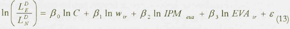 El grado de respuesta de la demanda de trabajo se representa con una función de parámetros constantes. El modelo empírico se basa en un mercado laboral competitivo, donde la función de demanda de trabajo en cada región (estado) de la industria maquiladora se especifica de la manera siguiente: