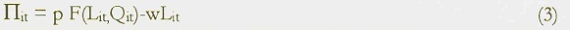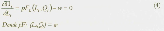 De este modo, la industria maximiza sus beneficios con respecto al empleo, donde el empleo se rige por las condiciones de primer orden para la maximización de la ecuación (3).