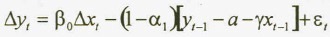 donde la expresión en el paréntesis cuadrado es el término de corrección de error. Esta ecuación puede ser estimada por medio del método de mínimos cuadrados ordinarios.