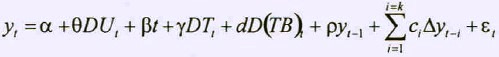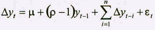 La especificación Dickey-Fuller Aumentada (DFA) se estima de acuerdo a la siguiente ecuación: