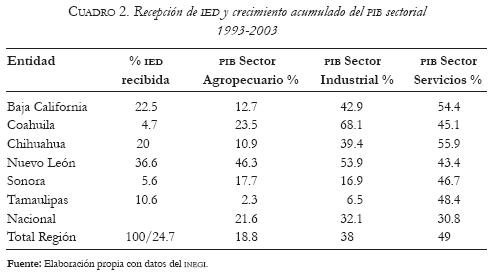A nivel subregional se observan también resultados diferenciados en las entidades de la frontera norte. Si bien la captación de IED ha sido superior al resto del país, por las ventajas de su localización, con el consecuente incremento en empleo, producción y exportaciones; el impacto no se ha presentado de manera homogénea.