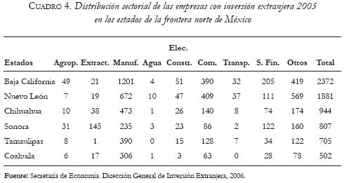 Los servicios fueron los de mejor desempeño para todas las entidades, lo cual viene a poner en duda que las actividades preferidas sean las manufacturas y cobre relevancia lo observado por Domínguez y Brown (2004), en el sentido de que a partir de 1998 los servicios están siendo privilegiados por la IED. De alguna manera esto explicaría parte del saldo deficitario de la balanza comercial de la industria maquiladora.