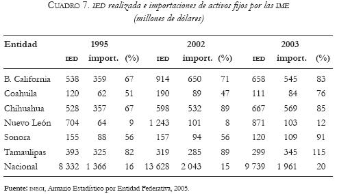 Por deficiencias como éstas Sonora no ha podido ser proveedor de la IED que recibe, lo que hace que casi todos los recursos que entran bajo este rubro regresen al país de origen o a otras regiones para la adquisición de activos fijos. Como confirmación de ello, se tiene que en 1995 ingresaron a Sonora poco más de 155 millones de dólares de la IED, de los cuales 56 por ciento se regresó para la adquisición de activos fijos. En 2003 la proporción aumentó a 91 por ciento, en tanto que en Nuevo León las cifras respectivas fueron 9 y 12 por ciento.