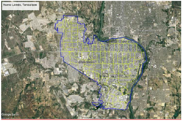 Imagen 3. Delimitación del área de estudio en Nuevo Laredo, Tamaulipas