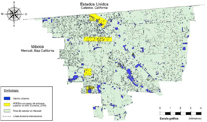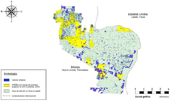El presente artículo tiene como objetivo proveer algunas respuestas a las interrogantes en materia de geografía urbana previamente mencionadas. Concretamente, el diseño metodológico buscó dar respuesta a la hipótesis planteada en el sentido de lograr determinar si los rangos de pobreza de la población pueden constituirse como un factor vinculante (cuantitativa y espacialmente) con el número de vacíos urbanos que fueron localizados en los núcleos urbanos de Mexicali, en Baja California, Nuevo Laredo, en Tamaulipas, y San Luis Río Colorado, en Sonora, México.