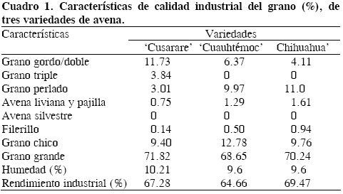 Al evaluar la calidad del grano para la industria, 'Cusarare' tuvo ventajas sobre las variedades 'Cuauhtémoc' y 'Chihuahua', en: mayores proporciones de grano perlado (sin cáscara) y de grano grande, y menor porcentaje de granos chicos, así como mayor rendimiento industrial (Cuadro 1). La semilla básica de 'Cusarare' para su siembra está disponible en el Campo Experimental Sierra de Chihuahua.