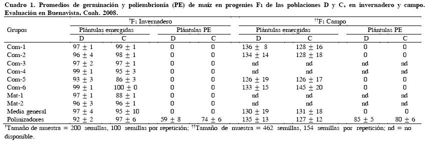 Con base en los resultados de este trabajo, es pertinente señalar que la poliembrionía que aquí se alude es diferente a la de mutantes recesivos como la señalada por Kermicle (1969; 1971) o Pilu (2000); de hecho, en una perspectiva histórica, la presente PE ha sido considerada de herencia cuantitativa (Espinoza et al. , 1998). Sin embargo, la experiencia acumulada en la selección y su uso con fines prácticos, requiere de un replanteamiento sobre su control genético.