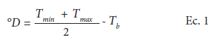 Para estimar diariamente los °D con este método, se requiere de la temperatura media ambiental (Ta) y aplicar la Ecuación 2 (Ojeda-Bustamante et al., 2004):