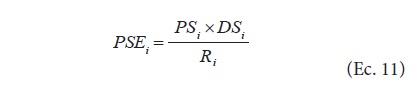 donde para la región i: PSEi es el precio de la semilla mejorada en pesos por tonelada de maíz obtenido; PSi es el precio de la semilla mejorada en pesos por kilogramo; DSi es la densidad de siembra en kg ha-1; y Ri es el nivel de rendimiento en t ha-1.
