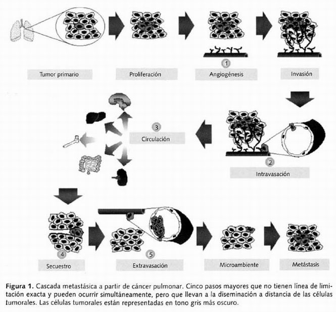 Figura 1. Cascada metastásica a partir de cáncer pulmonar. cinco pasos mayores...