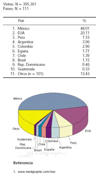 Revista del Instituto Nacional de Enfermedades Respiratorias en línea: Gráfica y "Los diez más buscados"