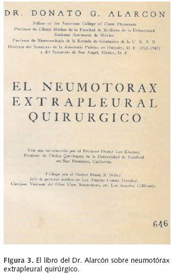 Tuve la fortuna de conocer al Maestro Alarcón (Figura 1), uno de los Gigantes de la Neumología y Cirugía de Tórax, al final de la década de los setenta, cuando llamó personalmente para comentarme algunos resultados de un artículo sobre Cáncer Broncogénico que había publicado en la revista Neumol Cir Tórax Mex1 y compararlo con otros de la literatura internacional del día; debo confesar que, además de sentirme halagado, me impresionó sobremanera cómo ese Gran Maestro de la Neumología Mundial estaba al tanto de las publicaciones del país y del extranjero. El Dr. Alarcón no sólo fue médico al día en la neumología y ramas afines de la medicina. Su carrera, a lo largo de más de 60 años de ejercicio profesional se caracterizó por haber cultivado y cosechado frutos como constructor de instituciones como el Sanatorio de Huipulco (Figura 2), ahora Instituto Nacional de Enfermedades Respiratorias Ismael Cosío Villegas, del que fue primer Director durante 11 años, y del Sanatorio San Ángel; también como maestro de innumerables generaciones de pregrado y especialización en la clínica y cirugía neumológicas; como cirujano introductor e impulsor en México de varias técnicas quirúrgicas (Figura 3) de colapso extrapleural de lesiones tuberculosas, algunas de las cuales llegó a dominar con virtuosismo, empleando materiales protésicos que tuve oportunidad de recibir como preciado (Figura 4) regalo suyo junto con cuidadosas instrucciones sobre su uso; introductor de equipo quirúrgico y de imagen en los tiempos de oro en que nuestra especialidad no se había fraccionado y en la que un mismo médico diagnosticaba, hacía los estudios de imagen y la broncoscopía, operaba, cuidaba el posoperatorio y seguía al enfermo por el resto de sus días; autor de numerosos libros (Figura 5) y centenas de artículos que se publicaron en todas las revistas de excelencia de la especialidad en América Latina, EUA, Francia, España e Inglaterra; académico de altos vuelos que ocupó la presidencia de nuestra Academia Nacional de Medicina, de la ahora Sociedad Mexicana de Neumología y Cirugía de Tórax que él fundó y numerosas otras en México, así como puestos ejecutivos de resonancia internacional en las Sociedades y Academias del resto de América Latina, EUA y algunos países de Europa; por ejemplo, ¡¡fue Regente en México del American Collage of Chest Physicians durante 16 años!!, récord digno del Libro Guiness; galardonado con innumerables medallas, diplomas y todo tipo de honores por las sociedades médicas, institutos y gobiernos de muchas partes del orbe; pero no sólo eso, fue también un exitoso y muy querido médico en la medicina privada, igual de los pobres de solemnidad que de los ricos y famosos de la política, los negocios, el medio artístico, la tauromaquia, etcétera, seguido por sus enfermos aun en el lecho del que ya no se levantaría, en donde les dio consulta, consuelo y receta pocos días antes de desaparecer físicamente.