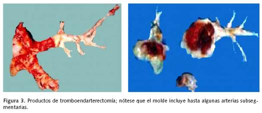 2°. Recientemente la indicación quirúrgica se ha extendido a pacientes sintomáticos con enfermedad trombótica en arterias subsegmentarias, es decir, enfermedad muy periférica. Hace apenas 10 años la selección de pacientes obligaba la accesibilidad del trombo en arterias principales, lobares o segmentarias, pero actualmente es factible el abordaje de arterias que antes se consideraban poco accesibles, pero sólo en sitios con gran experiencia. La edad no representa una contraindicación, pues se han operado enfermos de 8 a 86 años.