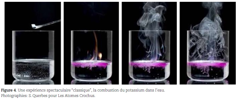 Quoi qu'il en soit, sur les quatre pôles fondamentaux évoqués plus haut, on peut considérer que deux d'entre eux sont désormais pris en compte et que depuis peu, un troisième commence même à être considéré: celui du plaisir. Pour rendre la chimie attractive, on se rend compte de l'intérêt des expériences ludiques et spectaculaires, des rencontres d'enseignants ont lieu pour échanger les dernières trouvailles et on fait de plus en plus appel à la vulgarisation de la chimie qui, elle, a plus d'un tour dans son sac pour amuser et émerveiller.