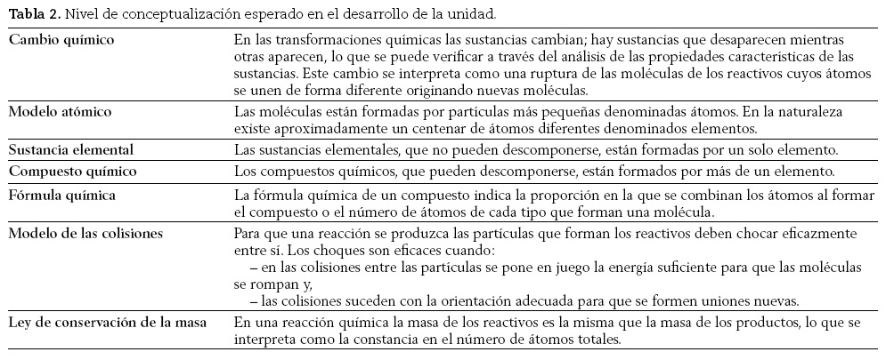 El hecho de elegir la noción de cambio químico como blanco de estudio responde a varios motivos. En primer lugar, dicha noción constituye uno de los núcleos estructurantes de la enseñanza de la química tanto a nivel de la educación secundaria como universitaria (Garritz, 1998; Reyes y Garritz, 2006). En segundo lugar, supone un ámbito de aprendizaje que presenta un importante grado de complejidad (Chamizo, Nieto y Sosa, 2002; Gómez Crespo, Pozo y Gutiérrez, 2002), por cuanto su comprensión exige un estudio complementario y paralelo a distintos niveles de modelización: macroscópico, submiscroscópico y simbólico (Johnstone, 1982; Solsona, Izquierdo y de Jong, 2003). Finalmente, los alumnos disponen, ya antes de empezar, de modelos explicativos espontáneos desarrollados para visualizar la materia y sus cambios (Trinidad-Velasco y Garritz, 2003), normalmente basados en explicaciones descriptivas macroscópicas (Andersson, 1990), o en el mejor de los casos de carácter discontinuo submicroscópico, pero en los que se proyectan propiedades y atributos del mundo macroscópico sobre el nivel atómico-molecular (Gómez Crespo y Pozo, 2004).