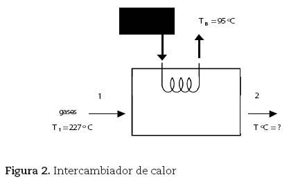 a) Calcule la temperatura de los gases al salir del intercambiador de calor, tal como se muestra en la figura 2.