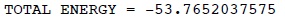 El programa genera un archivo de salida en donde es relativamente sencillo encontrar resultados acerca de la energía de los orbitales moleculares, su composición, la estructura electrónica y, particularmente, la energía total de este átomo dentro de esta aproximación: