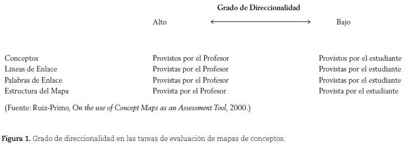 Esta caracterización ha hecho evidente a Ruiz-Primo y colaboradores (1996, 1997), la enorme variación en las técnicas de mapeo de conceptos utilizadas en la investigación y la práctica. Esta variación surge de las diferencias en la naturaleza de las tareas de mapeo, las características de los formatos de respuesta, y las características de los sistemas de puntaje. Según estos investigadores, es muy probable que con las diferentes técnicas de mapeo se puedan extraer diferentes aspectos de la estructura de conocimiento. Por ejemplo, una dimensión en que la tarea puede variar es la restricción que se impone sobre los estudiantes para representar su comprensión relacionada al contenido. Ruiz-Primo y colaboradores (2000) han llamado a esta dimensión "direccionalidad" y han caracterizado las técnicas de mapas de conceptos según su grado de direccionalidad.