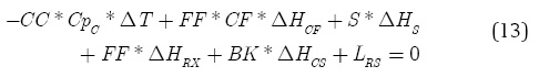 La cantidad de coque que se quema en el regenerador (BK) es la clave para asociar los balances en el reactor y en el regenerador, ésta es la diferencia entre el catalizador gastado y el catalizador regenerado:
