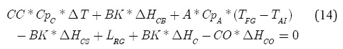 ∆HCB = calor de combustión del coque a la temperatura del gas de chimenea, J/kg (exotérmica, negativa).