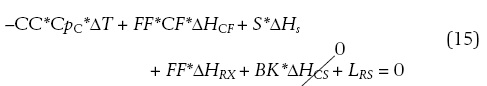 ∆HCF= entalpía de la alimentación combinada a la temperatura de salida del reactor respecto a la temperatura de entrada, J/kg.